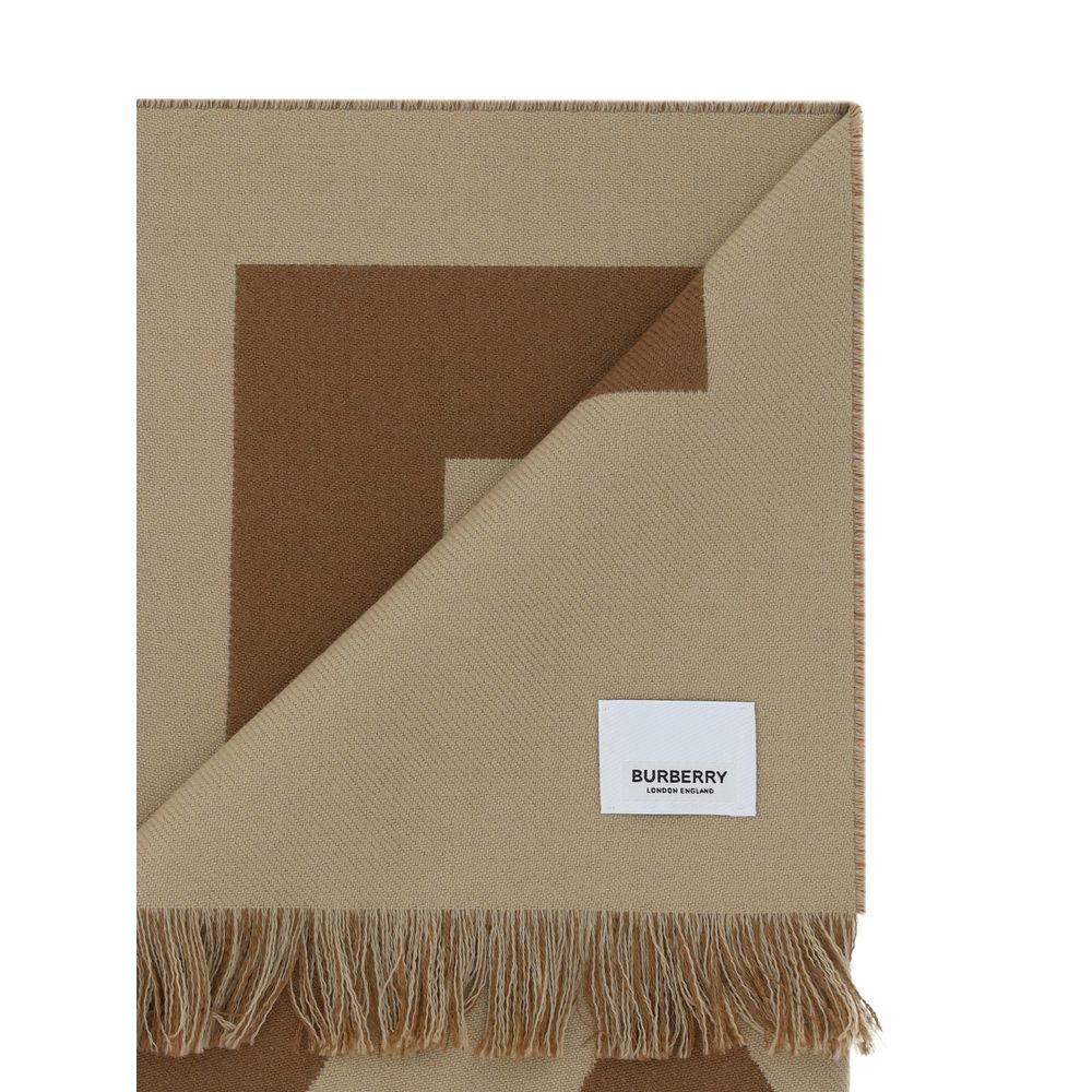 Wool Scarf by Burberry, iconic brand monogram printed in contrast on front and back, frayed hems.